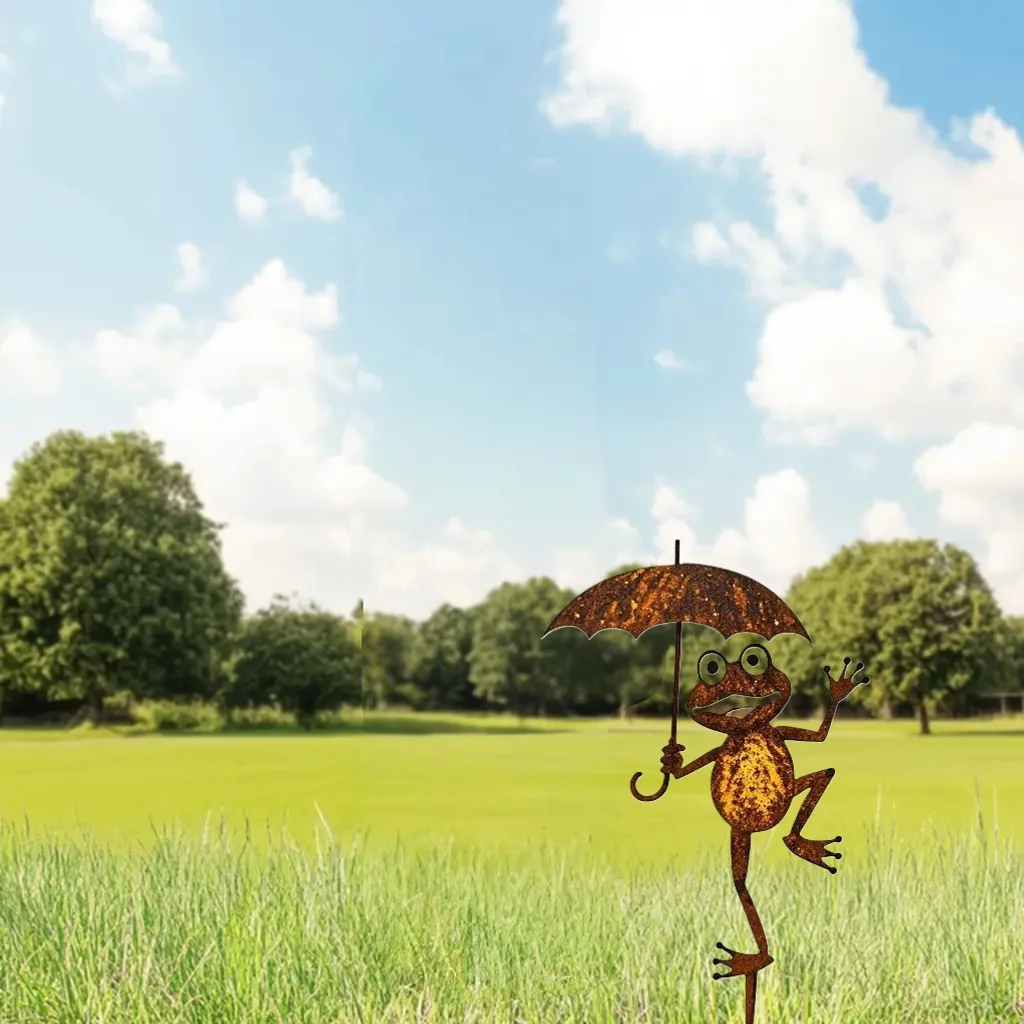 Retro Rust Iron Frog Stake Decorative Garden Art Metal Lawn Ornament