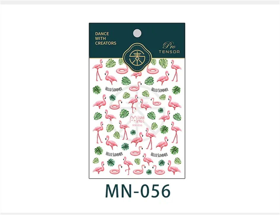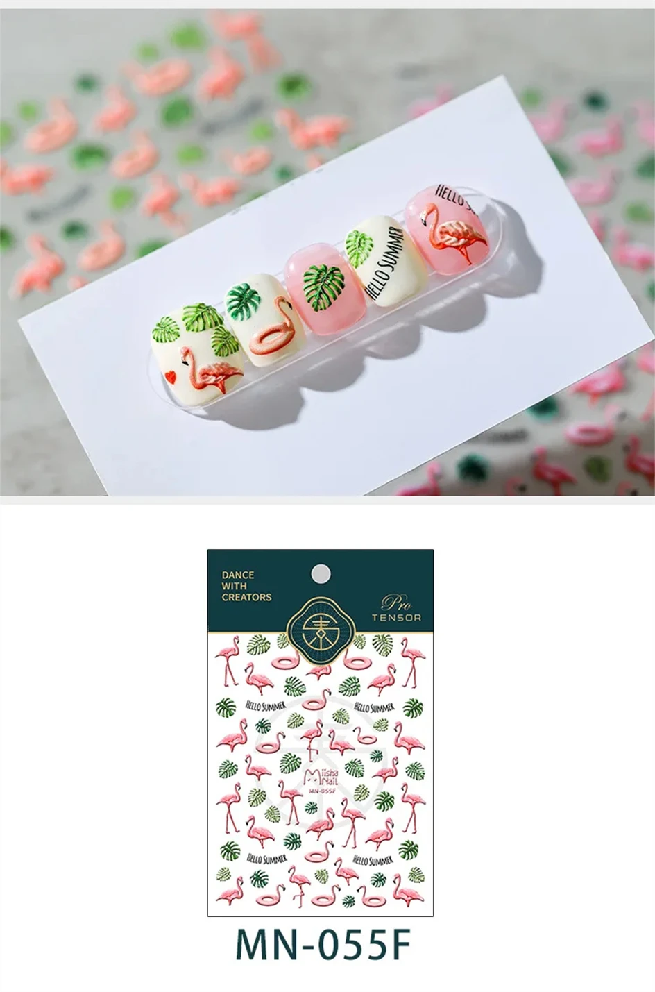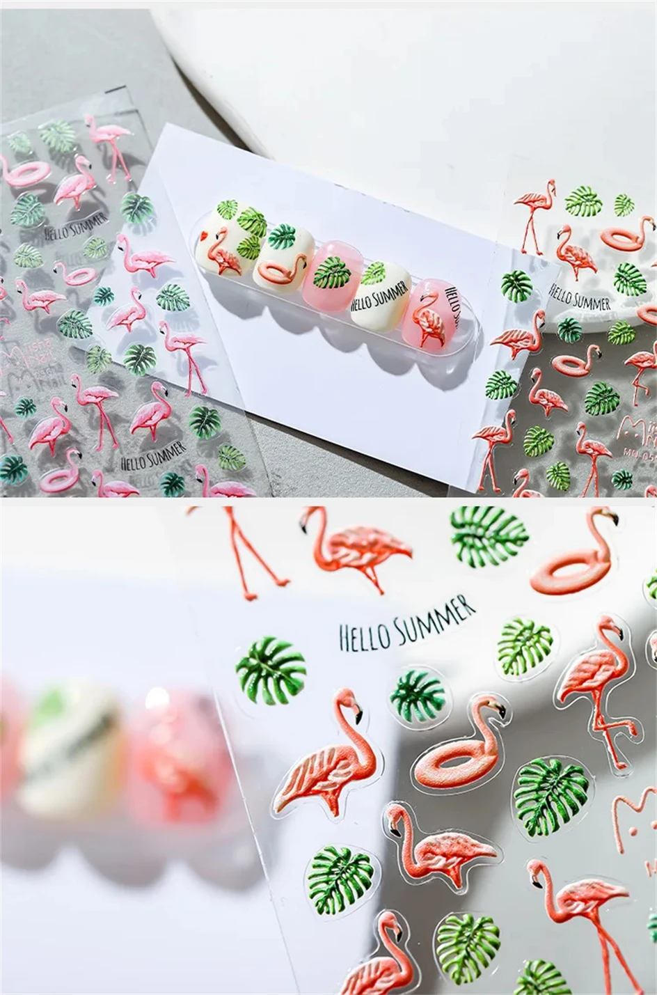 Cute Red Flamingo Green Turtleback Bamboo Nail Art